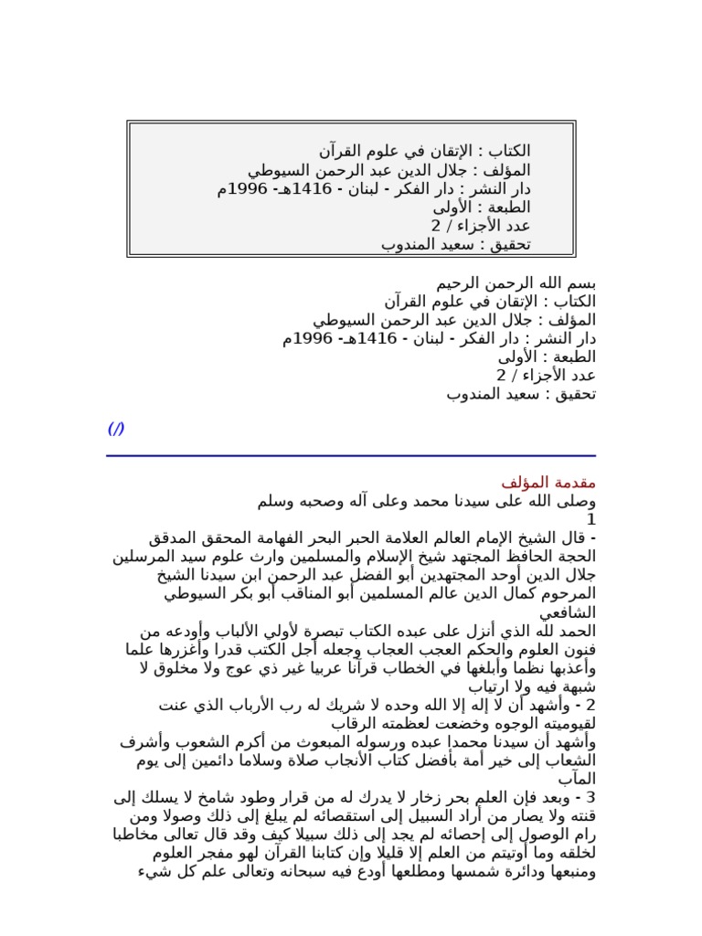 السيوطي الإتقان في علوم القرآن