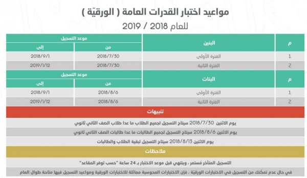 اختبار القدرات الاستعلام عن نتيجة الفترة الثانية 1439 لطلاب المملكة العربية السعودية