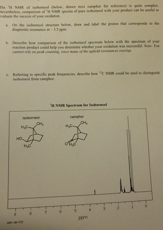 Solved The H Nmr Of Isoborneol Below Drawn Next Camphor Chegg Com