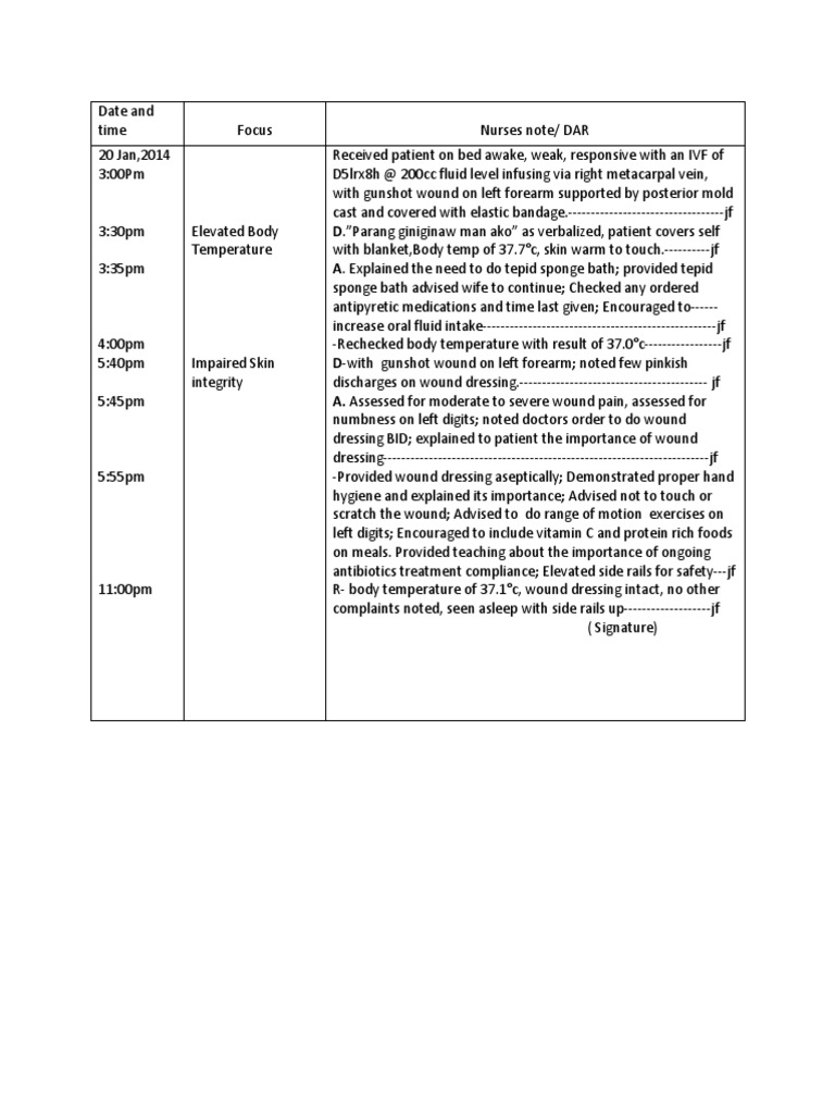 Fdar Samples Presentation Surgery Intravenous Therapy